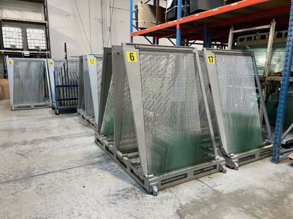 LiSEC Cutting Line package, an all-inclusive solution. This comprehensive package encompasses a cutting line and includes glass storage racks, advanced loading systems, and automated processing stations. With 42 glass storage racks, you’ll never run out of space for your raw materials. The package also boasts a sophisticated bridge crane loading system, suction device loading crane, and a hydraulic tiltable and transfer table, all designed to streamline glass handling. From precision cutting with the double-beam bridge machine to specialized laminated glass processing, this package includes it all. With automation at its core, it simplifies your entire production process, from storage to cutting. Call for more details today.