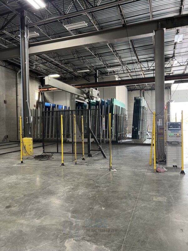 This is a pre-owned Movetro Jumbo Automatic Glass Loader, a robust and efficient glass handling solution equipped with a Gantry Loader and Racking System, capable of accommodating a wide range of glass sizes, from 126” x 70” to 204” x 132”. This versatile machine, in excellent working condition, is a valuable addition to any glass manufacturing or processing facility, offering increased productivity and streamlining operations. Included are 1 unit of 20-ton racks and 8 units of 15-ton racks, along with 11 units of 10-ton racks, ensuring seamless storage and organization. Don’t miss the opportunity to optimize your glass processing operations – contact us for pricing and availability today.